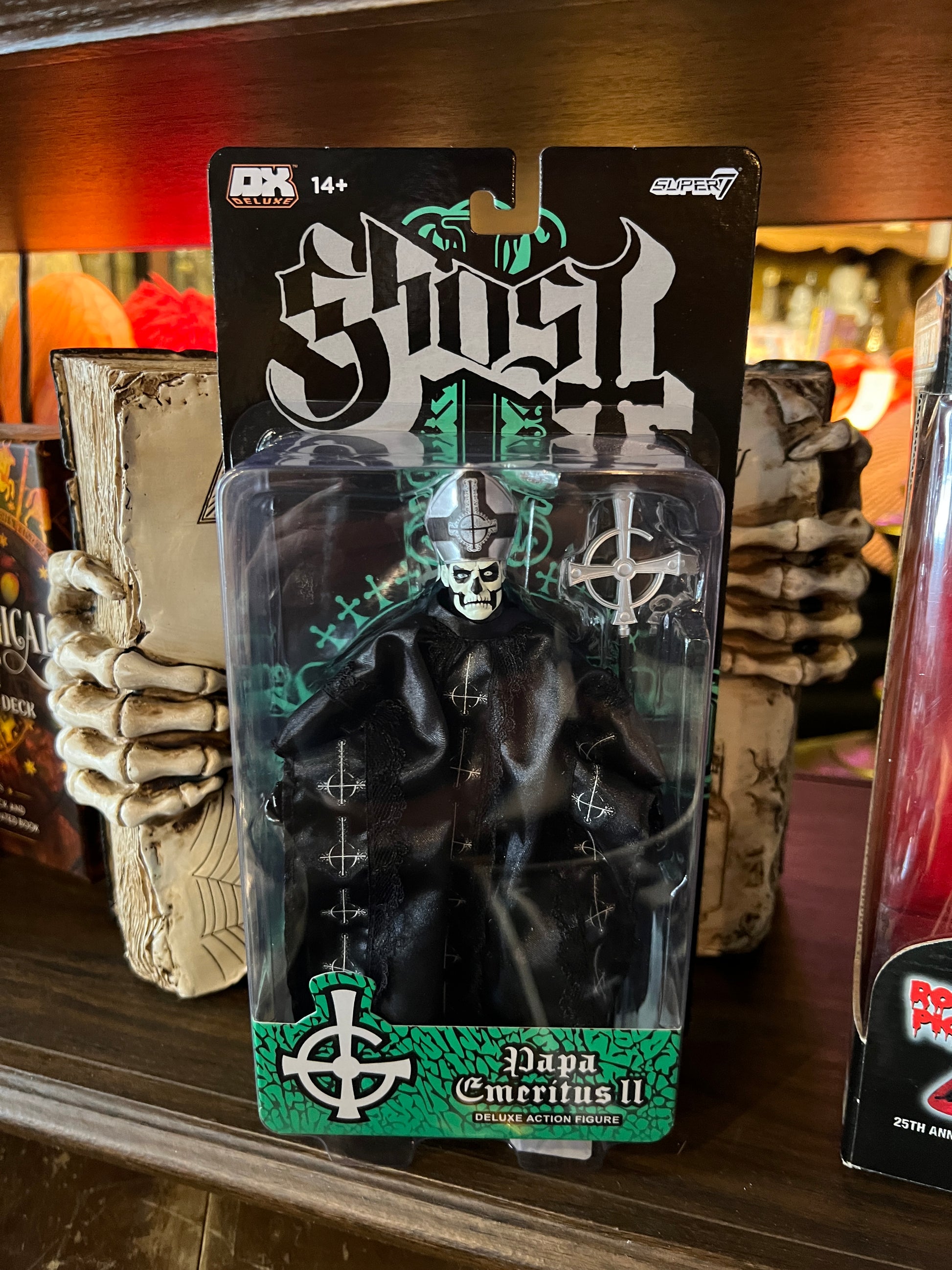 “Welcome Year Zero!” Papa Emeritus II is the second incarnation of heavy metal band Ghost’s frontman. Under his leadership, the band vastly increased its international fame and followers. This 7" scale, articulated Ghost DELUXE Papa Emeritus II figure is inspired by the charismatic frontman’s onstage guise in the Infestissumam album era, features intricate sculpt and premium paint detailing, includes a soft goods robe and staff accessory with Grucifix detail, and comes packaged on a die cut card back. Papa Emeritus II’s reign ended publicly onstage in Sweden at the final show of Ghost’s 2015 World Tour but order this DELUXE Papa Emeritus II figure and he can reign in your collection forever!