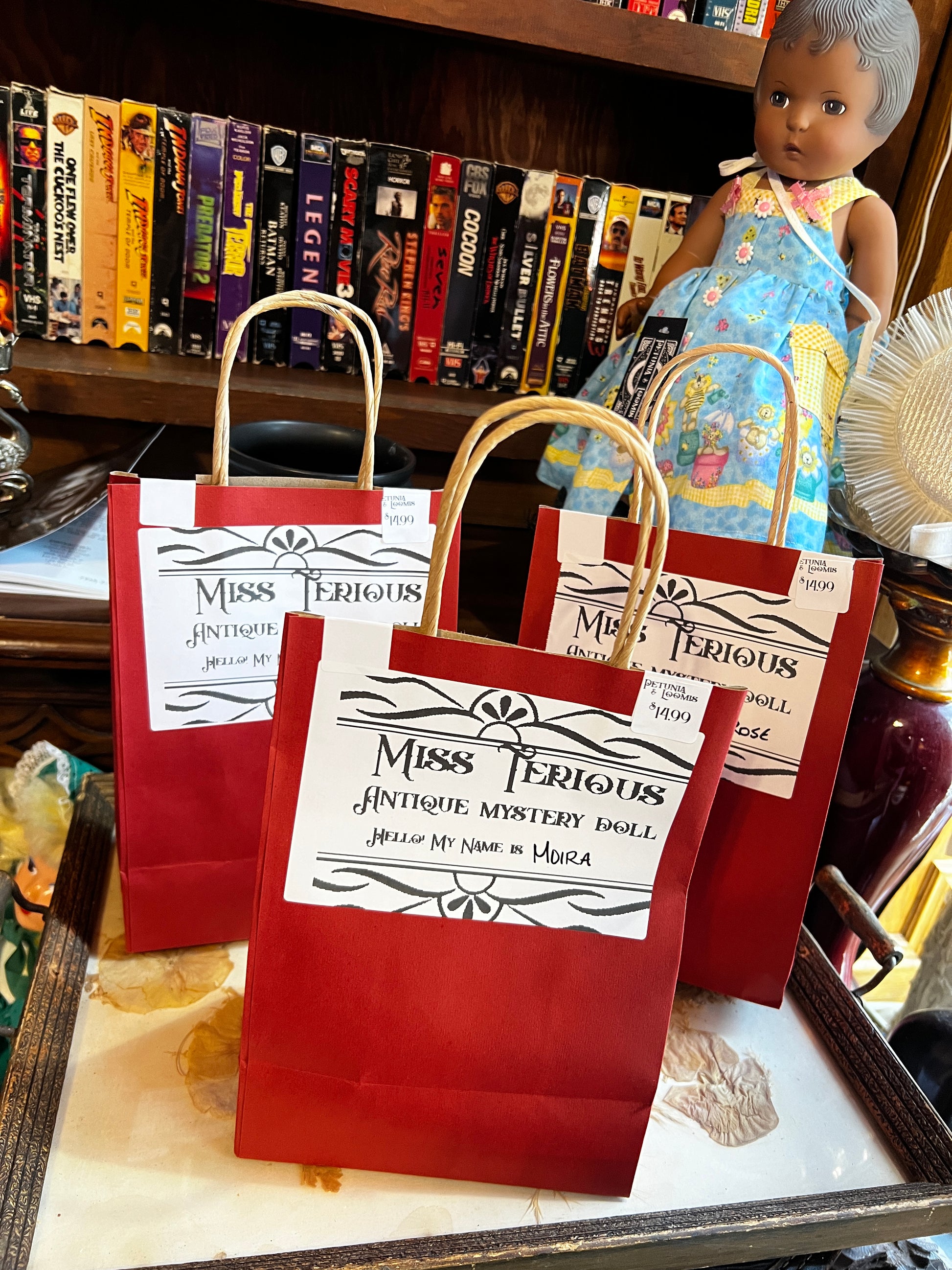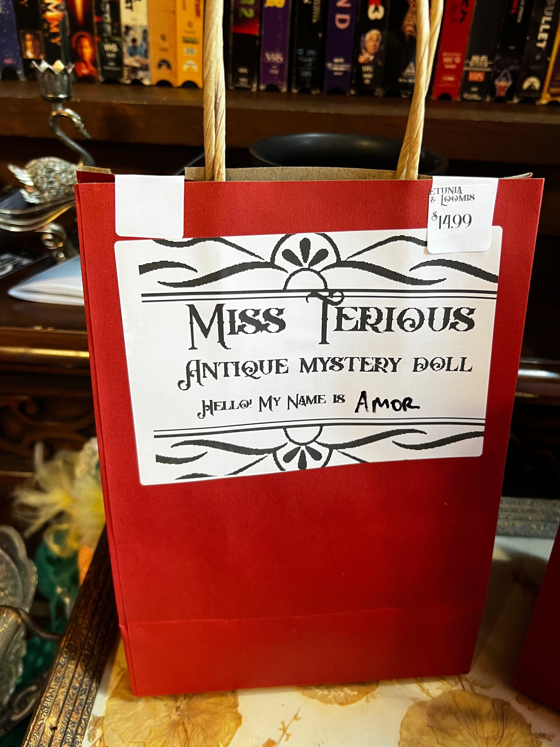 Miss Terious is our new mystery bag item! You get one uniquely named Antique Mystery Doll!