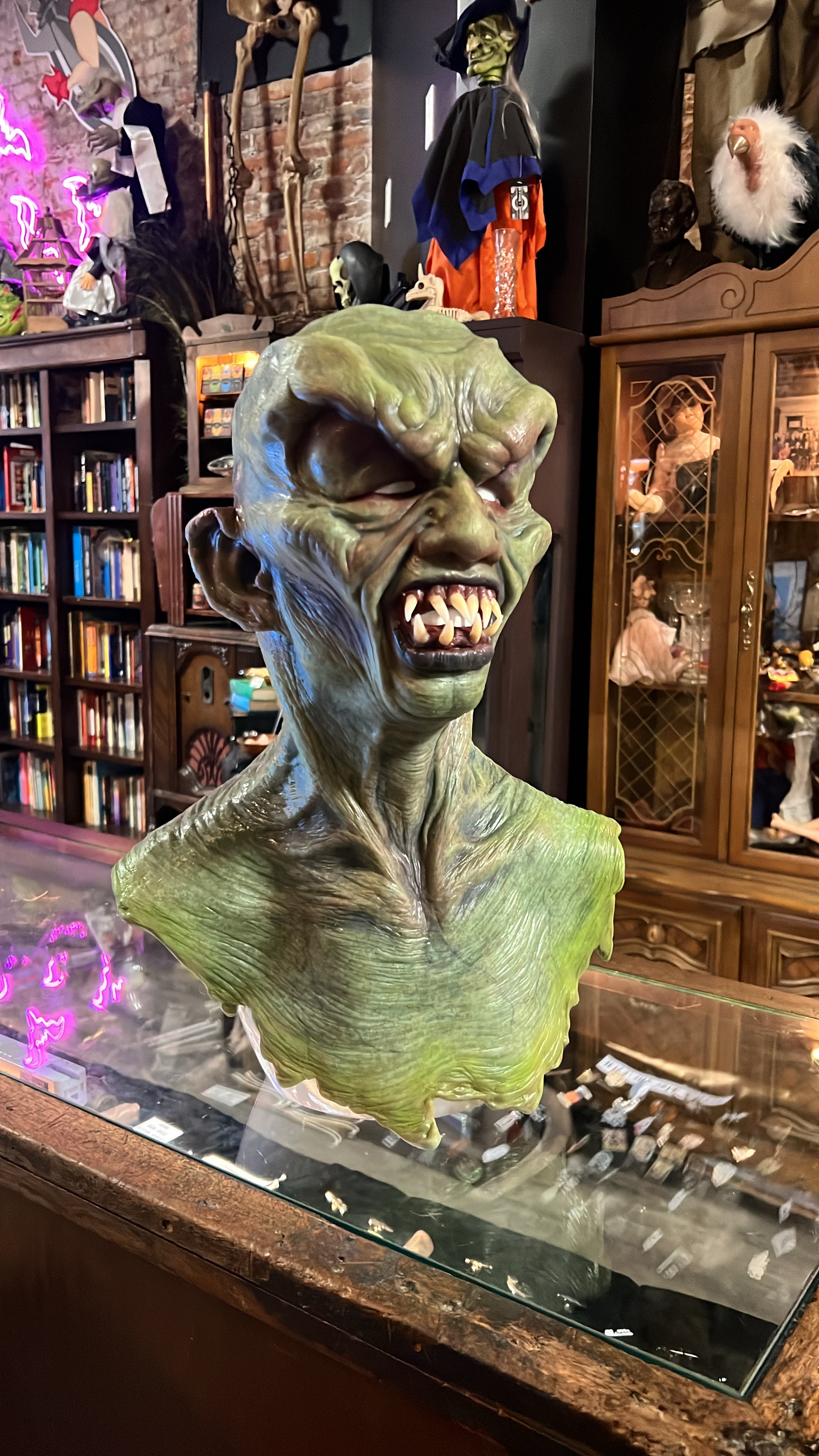 The Goosebumps Haunted Mask made by Savage Silicone is a rare collectible piece perfect for Halloween. Made from silicone, this realistic and detailed mask adds a terrifying touch to any Halloween costume or display. Manufactured in the current time period, this unique item is sure to be a standout piece for any horror fan or collector. Never worn. Put on the head mold for display other than that has been in original bag in a box. No rips, tears, or any sort of damage. Can be shipped on the head mold or in plastic packaging bag. Very rare and limited mask. |