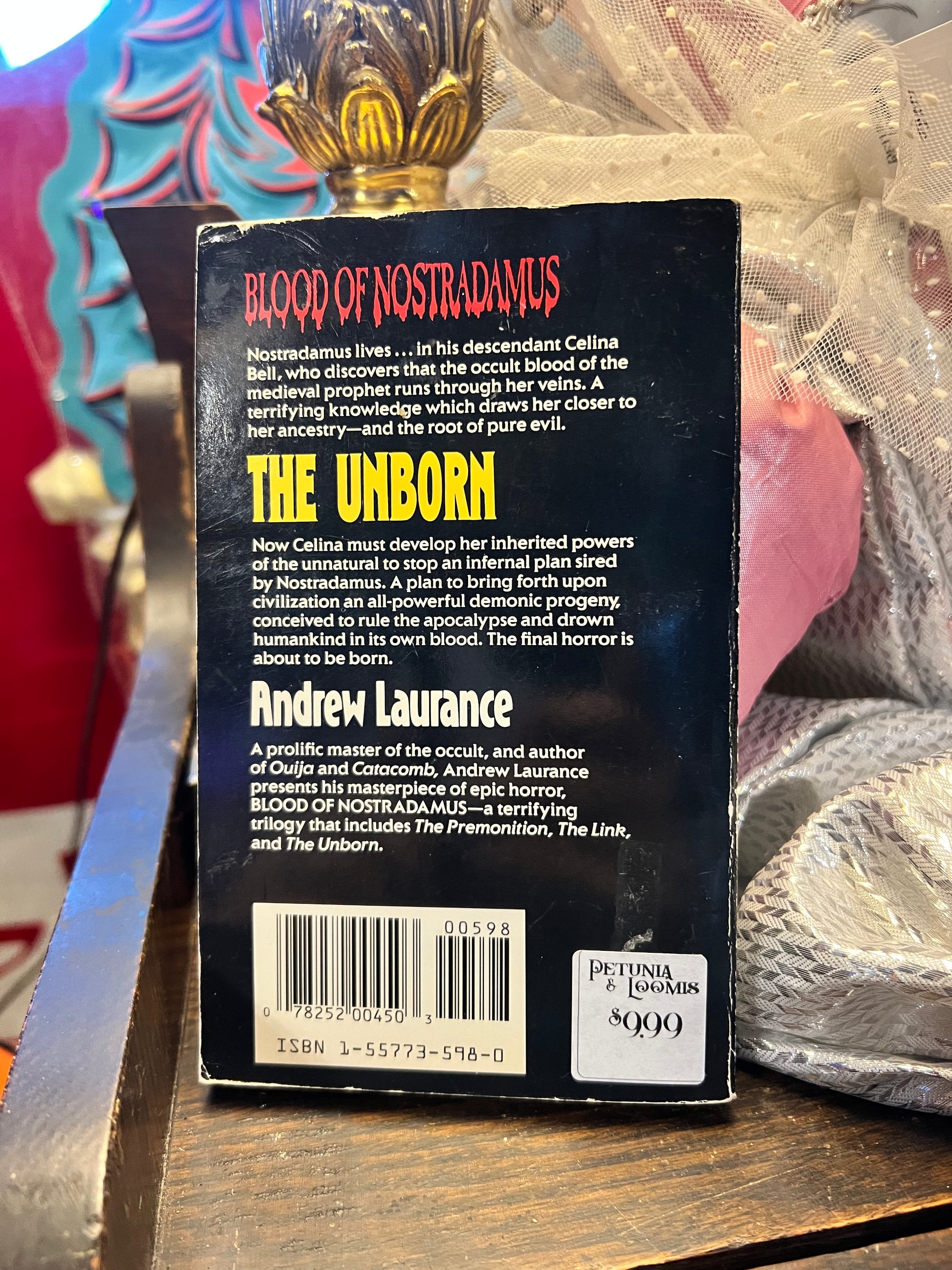 A prolific master of the occult, and author of Ouija and Catacomb, Andrew Laurance presents his masterpiece of epic horror, BLOOD OF NOSTRADAMUS-a terrifying trilogy that includes The Premonition, The Link, and The Unborn.